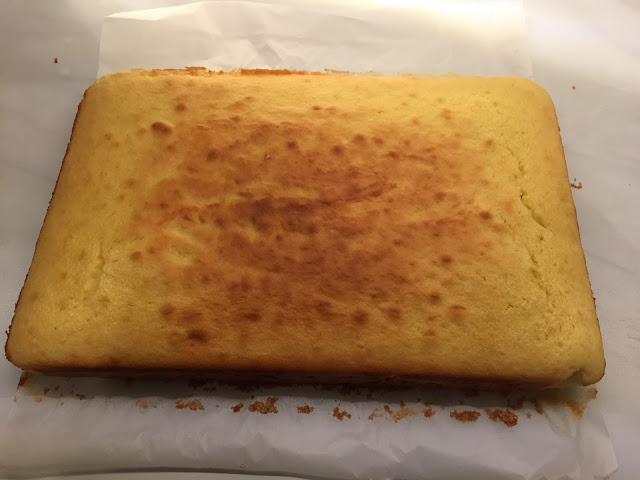Den Teig in ein mit Backpapier ausgelegtes Backblech geben, glatt streichen und ca. 30 min goldbraun backen.